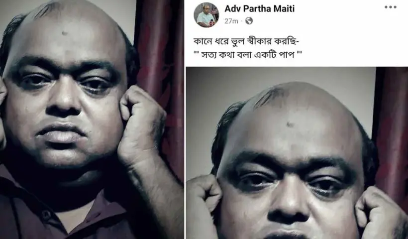 “সত্য কথা বলা একটি পাপ”— ফেসবুকে কান ধরে ছবি পোস্ট করে রাজনৈতিক মহলে তীব্র চাঞ্চল্য সৃষ্টি করলেন পূর্ব মেদিনীপুর জেলার তমলুক পুরসভার তৃণমূল কাউন্সিলর (TMC…
