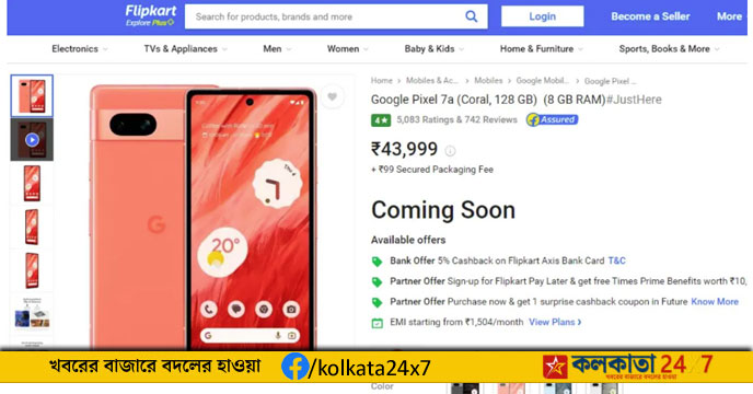 Flipkart Big Billion Days 2023: আমেরিকায় বিক্রি হওয়া গুগলের শক্তিশালী স্মার্টফোন এখন ভারতের বাজারেও প্রবেশ করতে চলেছে। Google Pixel 7a-এর নতুন কালার ভেরিয়েন্ট কোরাল ফ্লিপকার্টে দেখা গেছে। শক্তিশালী পিক্সেল সিরিজের স্মার্টফোনের এই রঙের বিকল্পটি আমেরিকায় বিক্রি হয়। ই-কমার্স প্ল্যাটফর্মে তালিকাভুক্ত হওয়ার পর আগামী মাস থেকে এর বিক্রি শুরু হবে বলে আশা করা হচ্ছে। Google Pixel 7A কোরালের দাম এবং বৈশিষ্ট্য সহ প্রতিটি বিস্তারিত এখানে পড়ুন।