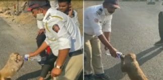 তৃষ্ণার্ত বানরকে জল খাওয়াচ্ছেন পুলিশকর্মী, ভাইরাল মন ভালো করা ভিডিও