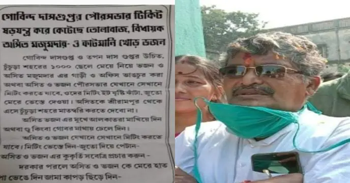 বিধায়ক (TMC) অসিত দাশগুপ্তর নামে পড়ল পোস্টার। মাথায় গোবর ঢেলে দেওয়ার নিদান দেওয়া হয়েছে। ফের প্রকট হল জেলা স্তরে তৃণমূলের দৈন্যদশা। পুরনির্বাচনের আগে খবরের শিরোনামে…