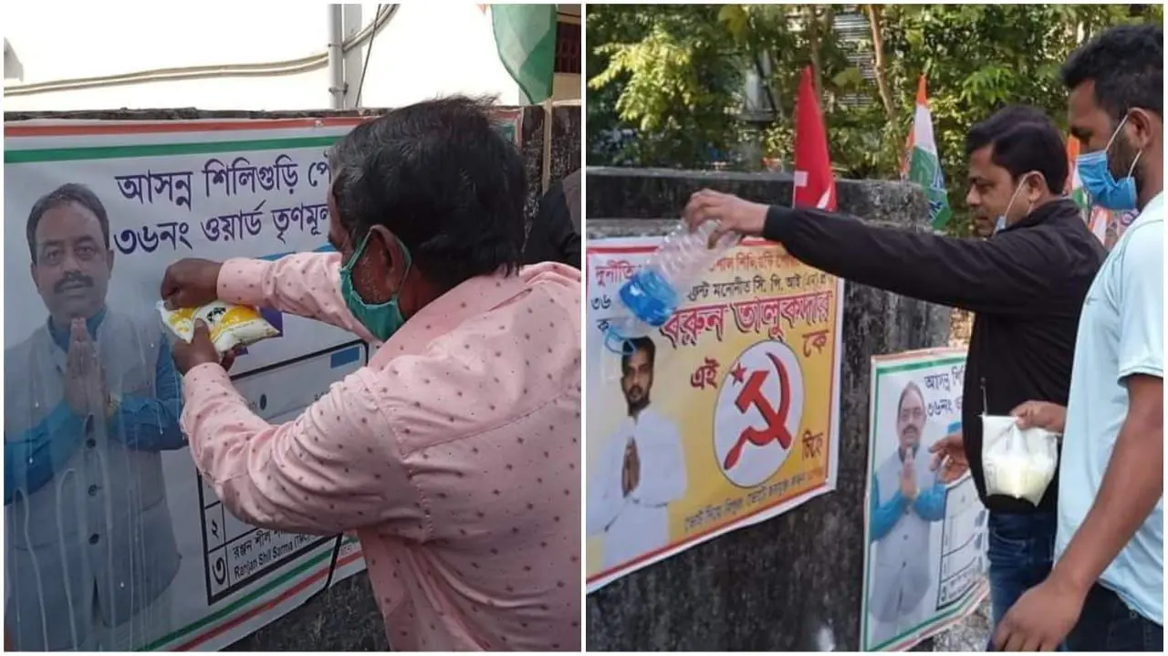 SMC Election: CPIM প্রার্থীর পোস্টার দুধ দিয়ে ধুয়ে দিল TMC