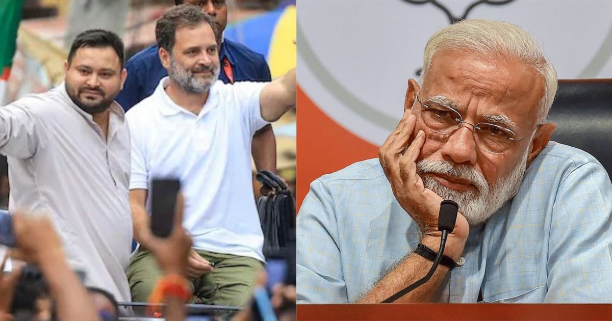 পাটনা: ভোটমুখী বিহারে ইন্ডিয়া জোটের ভোটার অধিকার যাত্রায় প্রধানমন্ত্রী ও তাঁর মা-কে অপমানের অভিযোগে বিতর্কে জড়াল কংগ্রেস (Congress)। সম্প্রতি দ্বারভাঙ্গা জেলার ঘটনার একটি ভিডিও ভাইরাল হওয়ার পরেই বিজেপির তোপের মুখে রাহুল গান্ধী (Rahul Gandhi)সহ কংগ্রেসের এক সাংসদ। ভিডিওটিতে দেখা যাচ্ছে, রাহুল গান্ধী, প্রিয়াঙ্কা গান্ধী এবং তেজস্বী যাদবের পোস্টার হাতে নিয়ে কিছু দলীয় কর্মী-সমর্থক মঞ্চ থেকে প্রধানমন্ত্রী (PM Modi) এবং তাঁর মাকে নিয়ে অশ্রাব্য মন্তব্য করছেন। যদিও সেইসময় মঞ্চে নেতা-নেতৃরা উপস্থিত ছিলেন না।