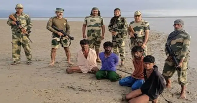 ভারতীয় ভূখন্ড বুঝতে পেরে লুকিয়ে পড়ার চেষ্টা করে তারা। তবে অচিরেই ধরা পড়ে বিএসএফের পেট্রলিং বোটের কাছে। বিএসএফ তাৎক্ষণিকভাবে এলাকাটি ঘিরে ফেলে। এলাকায় তল্লাশি চলছে। যদিও বাজেয়াপ্ত নৌকাগুলো পুঙ্খানুপুঙ্খভাবে তল্লাশি করে সন্দেহজনক কিছু উদ্ধার করা যায়নি।