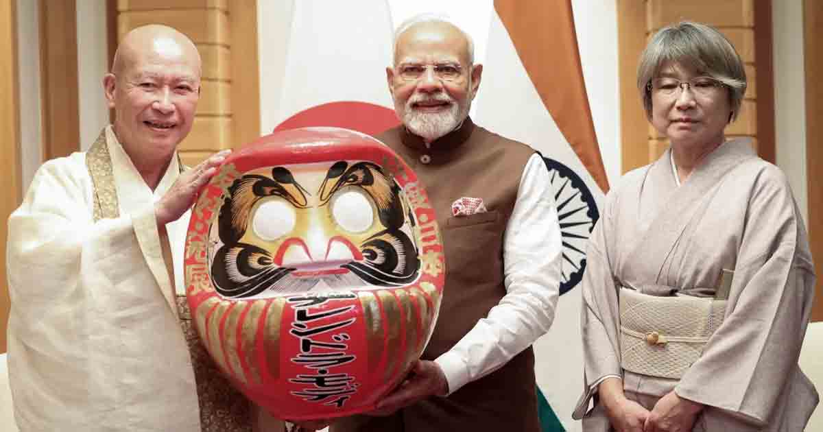 দারুমা-জি মন্দিরের প্রধান পুরোহিত রেভারেন্ড সেইশি হিরোসে শুক্রবার প্রধানমন্ত্রী মোদীকে একটি দারুমা পুতুল উপহার দেন। দারুমা জাপানের একটি প্রতীকী সাংস্কৃতিক প্রতীক এবং স্মারক। এটি জৈন বৌদ্ধধর্মের প্রতিষ্ঠাতা বোধিধর্মের উপর ভিত্তি করে তৈরি। এই পুতুলটিকে অধ্যবসায় এবং সৌভাগ্যের প্রতীক হিসাবে বিবেচনা করা হয় এবং প্রায়শই লক্ষ্য নির্ধারণ এবং অর্জনের জন্য ব্যবহৃত হয়।