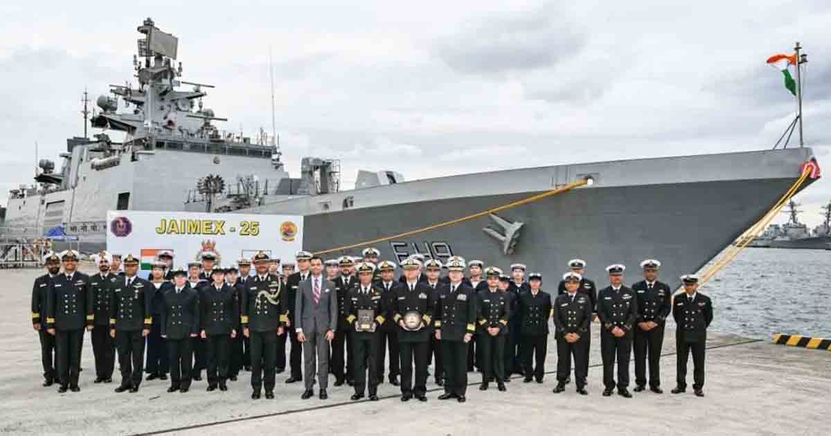 Shri R Madhu Sudan, Charge’ d’ Affaires and Rear Admiral YAMAGUCHI Nobohisa, Chief of Staff JMSDF Yokosuka District received INS Sahyadri in a solemn ceremony at Yokosuka. Sahyadri commanded by Capt Rajat Kumar is participating in Japan-India Maritime Exercise- JAIMEX 25.… pic.twitter.com/W7n3QCQzmE