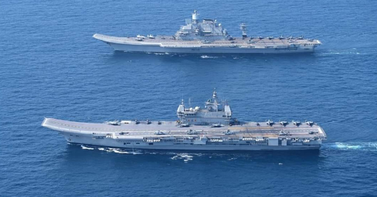 সম্প্রতি “টুইন ক্যারিয়ার অপারেশন” প্রদর্শন করল ভারতীয় নৌসেনার (Indian Navy) ২ টি এয়ারক্রাফ্ট ক্যারিয়ার INS Vikramaditya এবং INS Vikrant। সঙ্গে MiG-29K যুদ্ধ বিমানের একযোগে টেক-অফ এবং ক্রস-ডেক অবতরণ প্রদর্শনও করা হয়েছে।