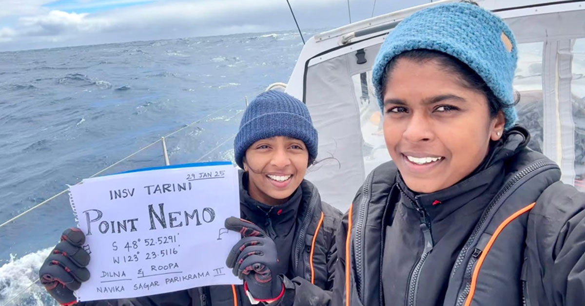 Lt Cdr Dilna K & Lt Cdr Roopa A cross Point Nemo – the Oceanic Pole of Inaccessibility. A testament to resilience, courage & the spirit of adventure.