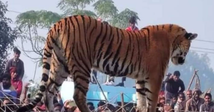 উত্তরপ্রদেশের পিলিভিটের অভয়ারণ্য থেকে বেরিয়ে স্থানীয় আটকোনা গ্রামে প্রবেশ করে একটি বাঘ। গ্রামের গুরুদোয়ারার প্রাচীরে উঠে শুয়ে পড়ে বাঘটি। স্থানীয়রা সাত সকালে বাঘ দেখে চমকে যান। তবে বাঘটি কাউকে তেড়ে আসেনি। মনের আনন্দে সেই বাঘ শীতের রোদেলা সকালে আরাম করে শুয়ে পড়ে। প্রাচীরে হাঁটতে থাকে।