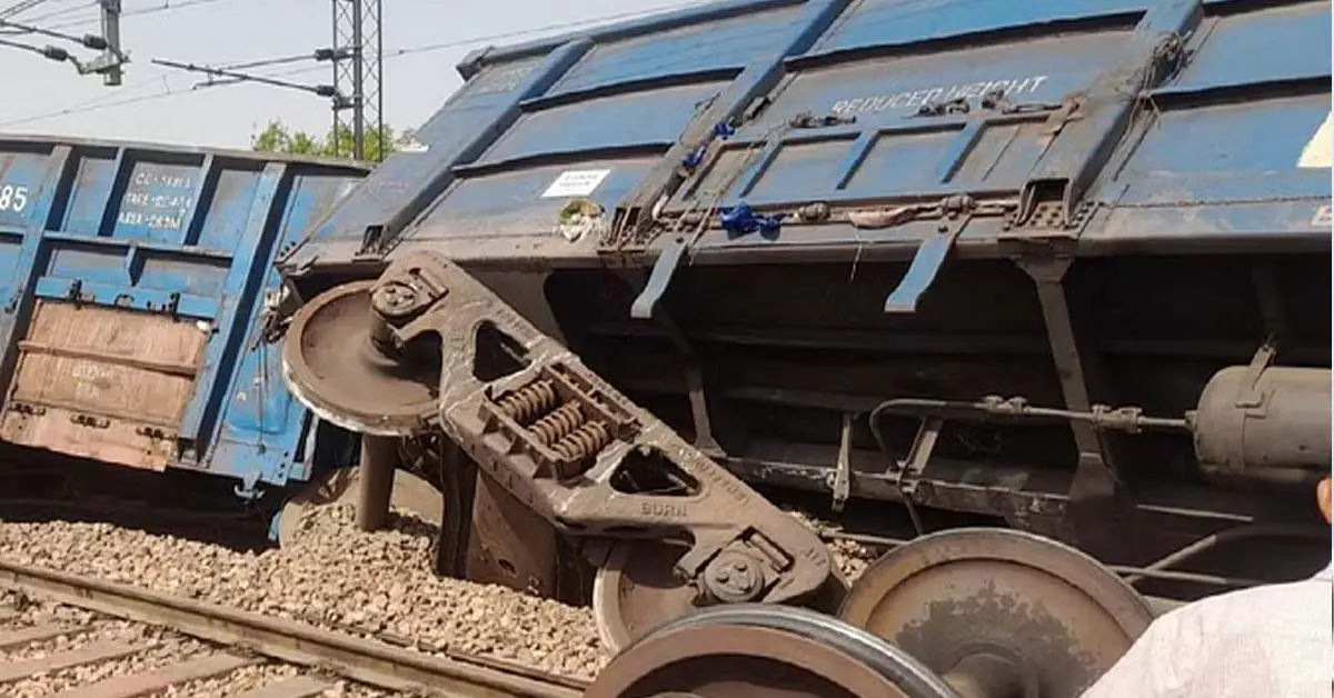 #WATCH | Faridabad, Haryana: Two coaches of a goods train loaded with coal, going from Agra to Delhi derailed near Faridabad railway station at around 9:30 am. No injuries have been reported. pic.twitter.com/uQd1ijcSnp