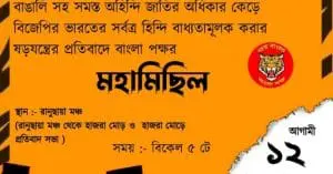 বাংলা পক্ষ জানিয়েছে, আগামী ১২ই অক্টোবর বুধবার ঠিক কলকাতার রানুছায়া মঞ্চ থেকে হিন্দি ভাষা জবরদস্তি চাপিয়ে দেওয়ার বিরোধিতায় মিছিল হবে। সেই মিছিল শেষ হবে হাজরা মোড়ে। সেখানে হবে প্রতিবাদ সভা। বাংলা পক্ষ জানিয়েছে, ‘আমরা ভারতে হিন্দি ভাষীদের মতো সমান অধিকার চাই।’