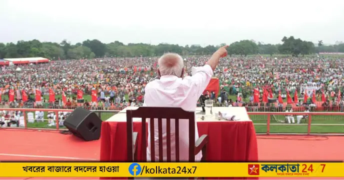 সমাবেশ থেকে শাসকদল তৃ়নমূলকে বিঁধলেও রাজনৈতিক পর্যালোচনায় উঠে আসছে যতটা সিপিআইএমকে নিশানা করেছেন প্রভাস ঘোষ ততটা আক্রমণাত্মক তিনি ছিলেন না তৃণমূলের প্রতি।