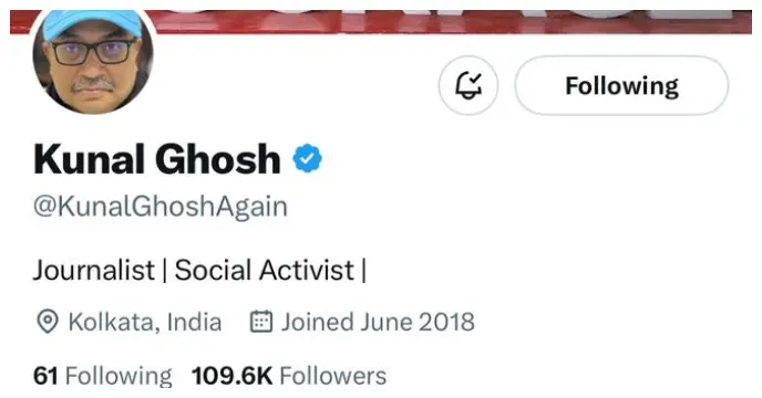 এখন কুণাল ঘোষের বায়োতে শুধু লেখা সাংবাদিক এবং সমাজকর্মী। এদিকে এই ঘটনার পর থেকেই প্রশ্ন উঠতে শুরু করেছে, তাহলে তিনিও কি এবার তৃণমূল ছাড়ার পথে? বৃহস্পতিবার রাতে তৃণমূল কংগ্রেসের মুখপাত্র কুণাল ঘোষের এক্স হ্যান্ডেলে করা একটি পোস্ট ঘিরে শোরগোল পড়ে যায় বাংলায়।