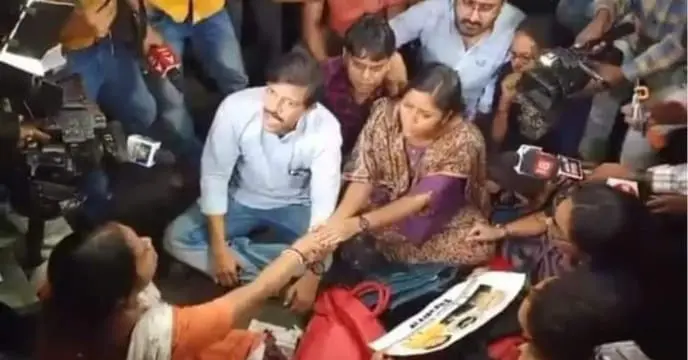 ৮০ ঘন্টার বেশি সময় ধরে নিয়োগ দুর্নীতি (Tet Scam) ও চাকরির দাবিতে করুণাময়ীতে চলছিল টেট চাকরি প্রার্থীদের অবস্থান ও অনশন কর্মসূচি। আদালতের নির্দেশে এপিসি ভবন চত্বরে ১৪৪ ধারা লাগু হওয়ার পর থেকেই তৎপর হয় পুলিশ। মাত্র দু মিনিটের মধ্যে তুলে নিতে বলা হয় অবস্থান বিক্ষোভ। ১৫ মিনিটের অপারেশনে খালি হয় করুণাময়ী। মধ্যরাতে প্রশাসনের ভূমিকা নিয়ে প্রশ্ন উঠছে বিভিন্ন মহলে। তবে কটাক্ষ উড়ে আসছে সিপিআইএম (CPIM) নেত্রী মীনাক্ষী মুখার্জির (Minakshi Mukherjee) দিকে।