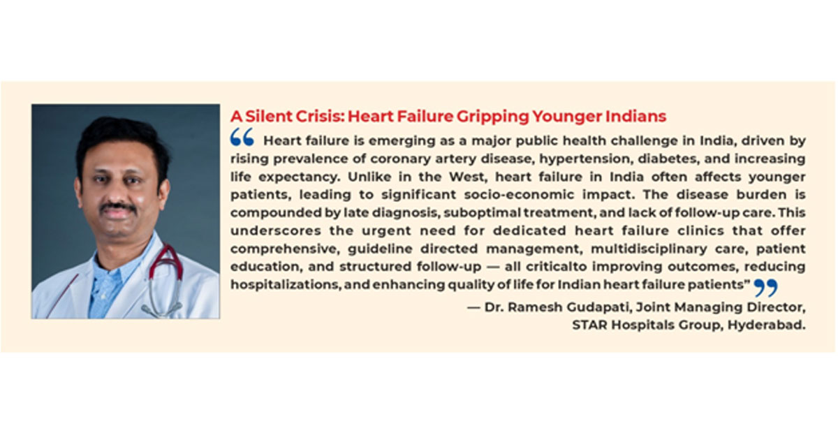 Heart failure is emerging as a major public health challenge in India, driven by rising prevalence of coronary artery disease, hypertension, diabetes, and increasing life expectancy. Unlike in the West, heart failure in India often affects younger patients, leading to significant socio-economic impact. The disease burden is compounded by late diagnosis, suboptimal treatment, and lack of follow-up care. This underscores the urgent need for dedicated heart failure clinics that offer comprehensive, guideline-directed management, multidisciplinary care, patient education, and structured follow-up — all critical to improving outcomes, reducing hospitalizations, and enhancing quality of life for Indian heart failure patients”— Dr. Ramesh Gudapati, Joint Managing Director, STAR Hospitals Group, Hyderabad.