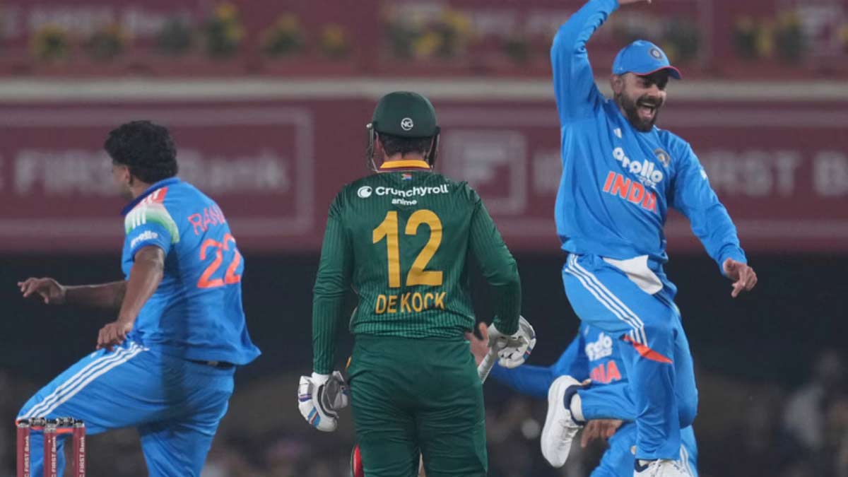 রাঁচি: রাঁচিতে ভারত দক্ষিণ আফ্রিকা প্রথম একদিনের ম্যাচে ম্যাজিক দেখিয়েছে রোকো জুটি। কোহলির সেঞ্চুরি এবং রোহিত-রাহুলের ঝোড়ো ব্যাটিংয়ে ভর করে দক্ষিণ আফ্রিকাকে ৩৫০ রানের লক্ষ্য মাত্রা দিয়েছিল মেন্ ইন ব্লু ব্রিগেড। জবাবে ব্যাট করতে নেমে শুরুটা ভালো হয়নি দক্ষিণ আফ্রিকার। নির্ভরযোগ্য তিন ব্যাটার ডি কক, মারকরাম এবং রিকেলটন রান পাননি।