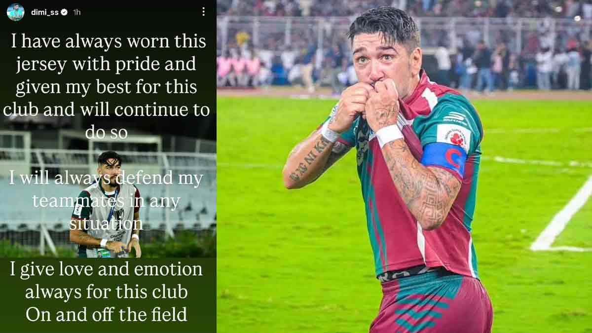 এমনকি রাগের বশবর্তী হয়ে এক সমর্থকের হাত থেকে মোবাইল ফোনও কেড়ে নেওয়ার চেষ্টা করতে দেখা যায দিমিকে। সেই নিয়ে নিন্দের ঝড় বইতে শুরু করেছে বাগান সমর্থকদের মধ্যে। এবার সেই সমস্ত কিছু মাথায় রেখে সমর্থকদের উদ্দেশ্যে বিশেষ পোস্ট করেন এই ফুটবলার। মোহনবাগানের (Mohun Bagan) জার্সির উপর এএফসির অ্যাপ্রন পরিহিত একটি ছবি আপলোড করে তিনি লেখেন, ” আমি সবসময় গর্বের সাথে এই জার্সিটি পরেছি এবং এই ক্লাবের জন্য আমার সেরাটা দিয়েছি এবং ভবিষ্যতেও তা করে যাব। যেকোনো পরিস্থিতিতে আমি আমার সতীর্থদের সর্বদা রক্ষা করব। মাঠে এবং মাঠের বাইরে আমি সবসময় এই ক্লাবের জন্য ভালোবাসা এবং আবেগ দিয়ে থাকি।”