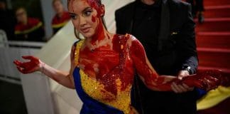 কান উৎসবে হাজির রক্তমাখা তরুণী! রুশ হামলার প্রতিবাদ