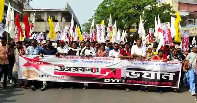 মানালী দত্ত: মুর্শিদাবাদের ফারাক্কায় (Farakka) শিশু কন্যা নির্যাতন ও হত্যার ঘটনায় প্রতিবাদ হিসেবে ডিওয়াইএফআইয়ের (DYFI) উদ্যোগে একটি বিক্ষোভ মিছিল অনুষ্ঠিত হয়েছে। সোমবার বিকেলে ফারাক্কার দু…