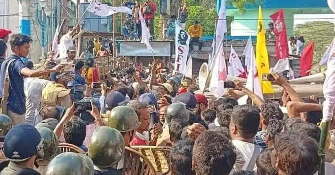 বাম যুব সংগঠনের (DYFI) মিছিল আসছে দেখে মহকুমা শাসকের কার্যালয় ঘিরে নিয়েছিল পুলিশ। পরপর ব্যারিকেড ভেঙে সেই মিছিল ঢুকে গেল অফিসের ভিতরে। পিছু হটল পুলিশ।…