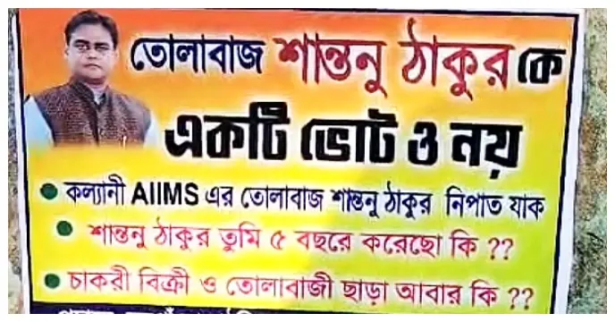 View More Shantanu Thakur: ‘তোলাবাজ শান্তনু ঠাকুরকে একটি ভোটও নয়’ পোষ্টার ঘিরে চাঞ্চল্যLoksabha Vote 2024: আসন ভাগের লড়াইতে এবার শাহ