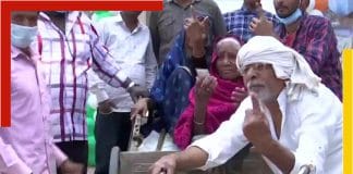 অসুস্থ স্ত্রী ও প্রতিবন্ধী বৃদ্ধাকে ঠেলায় চড়িয়ে ভোট কেন্দ্রে বৃদ্ধ