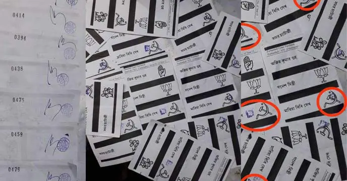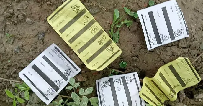 পঞ্চায়েত ভোটের দিন লুঠ হওয়া শতাধিক ব্যালট পড়ে আছে নদীর ধারে, মাঠে। শয়ে শয়ে ব্যালট। কোনোটা ফাঁকা, কোনোটায় বাম প্রার্থীদের প্রতীকে ছাপ মারা। কিছু বিজেপির…