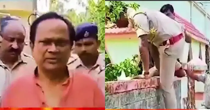 -আপনি বাইরে আসুন। -না যাব না। ডাকলেই যেতে হবে? বেশ কিছুক্ষণ তর্কাতর্কির পর অবশেষে পুলিশ টপকালো পাঁচিল। দুই অফিসার পাঁচিল টপকে বাগানে নেমে এক তৃণমূল…