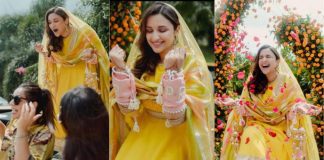 হাত ভর্তি মেহেন্দি, হলুদ লেহেঙ্গায় মিষ্টি পরিণীতিতে বুঁদ নেটিজেনরা