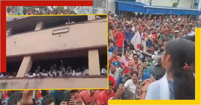 সিপিআইএমের (CPIM) বাম যুব সংগঠনের (DYFI) স্লোগান সিঙ্গুরে (Singur) কারখানা পুরনায় খোলা ও চাষযোগ্য জমি ফেরতে জন্য। সেই স্লোগানে দূর থেকে গলা মেলাচ্ছে বিদ্যালয়ের পড়ুয়ারা।…