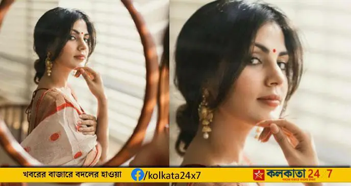 View More লাল টিপ, ১০০ বছর পুরনো শাড়িতে বিজয়া রিয়া চক্রবর্তীর
