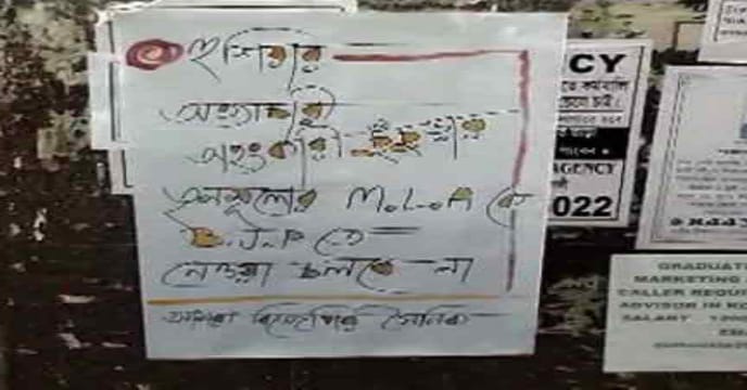 চুঁচুড়ায় জেলা পার্টি অফিস থেকে শুরু করে স্টেশন চত্ত্বর, পোস্টারের ছেয়ে গিয়েছে গোটা এলাকা। পোস্টারে লেখা রয়েছে, “অত্যাচারী, অহংকারী চুঁচুড়ার তৃণমূলের বিধায়ককে বিজেপিতে নেওয়া চলবে না”। জানা গিয়েছে গোটা চুঁচুড়া জুড়ে ‘আমরা বিজেপির সৈনিক’ এর তরফে পোস্টার দেওয়া হয়েছে। এই নিয়ে শুরু হয়েছে ঘোর রাজনৈতিক চাপানউতোর। যেভাবে জনসম্মুখে পোস্টার লাগানো হয়েছে তাও আবার তৃণমূলের বর্তমান বিধায়কের নামে, তবে সত্যিই কি বিজেপির পথে তৃণমূলের বিধায়ক?