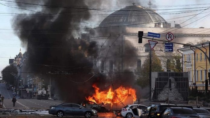 ক্রিমিয়ার (crimea) বিখ্যাত ক্রেচ সেতুতে বিস্ফোরণের পর ইউক্রেন Ukraine War) থেকে পাঠানো হয়েছিল বার্তা এই তো শুরু! আর সোমবার রুশ হানায় ফের জ্বলছে ইউক্রেনের রাজধানী শহর কিয়েভ (Kiev)। রুশ প্রেসিডেন্ট পুতিনের বোমারু জবাব খেলা চলছে। আর ইউক্রেনের প্রেসিডেন্ট জেলেনস্কি বলেছেন রাশিয়া (Russia) আমাদের দুনিয়া থেকে মুছে ফেলতে চায়। পরপর বিস্ফোরণে জ্বলছে ইউক্রেন রাজধানী। কিয়েভবাসী চলে গেছেন (Under Ground মাটির তলায়।