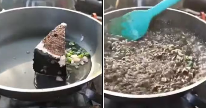 X-এ শেয়ার করা ভাইরাল ভিডিওতে দেখা যাচ্ছে এক বিক্রেতা এই Pastry Maggi সংমিশ্রণ খাবারটি বানাচ্ছেন। দেখা যাচ্ছে, প্রথমে সেই বিক্রেতা একটি প্যানে তেল গরম করছেন। তারপরে তাতে লঙ্কা আর পেঁয়াজ যোগ করছেন। এরপর সেই গরম তাওয়াতে রাখা হয় একটি চকলেট পেস্ট্রি। এরপর একটি স্প্যাটুলা দিয়ে, পেস্ট্রিটি ভেঙে দেওয়া হয়, তারপর কড়াই থাকা মশলাগুলির সাথে মিশিয়ে দেওয়া হয়। এর পরে, এতে দেওয়া হয় ম্যাগি নুডুলস এবং তার সাথে থাকা মসলা।