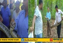 অন্যদিকে, মাছ ধরার জালে সাপ উদ্ধারের ঘটনায় রীতিমতো আতঙ্কিত জেলেরা। জল থেকে কয়েক হাত দূরে থাকা এখন তাদের কাছে ভাল মনে হচ্ছে। স্থানীয় সূত্রে জানা গিয়েছে, মৎস্য জীবীরা জালটি তোলার পর দেখতে পান, সেখানে বিশাল একটি সাপ আটকে রয়েছে। তখন তারা বন দফতরের কাছে খবর দেন। পরে বন দফতরের কর্মীরা ঘটনাস্থলে পৌঁছে সাপটিকে উদ্ধার করে নিয়ে যায়।
