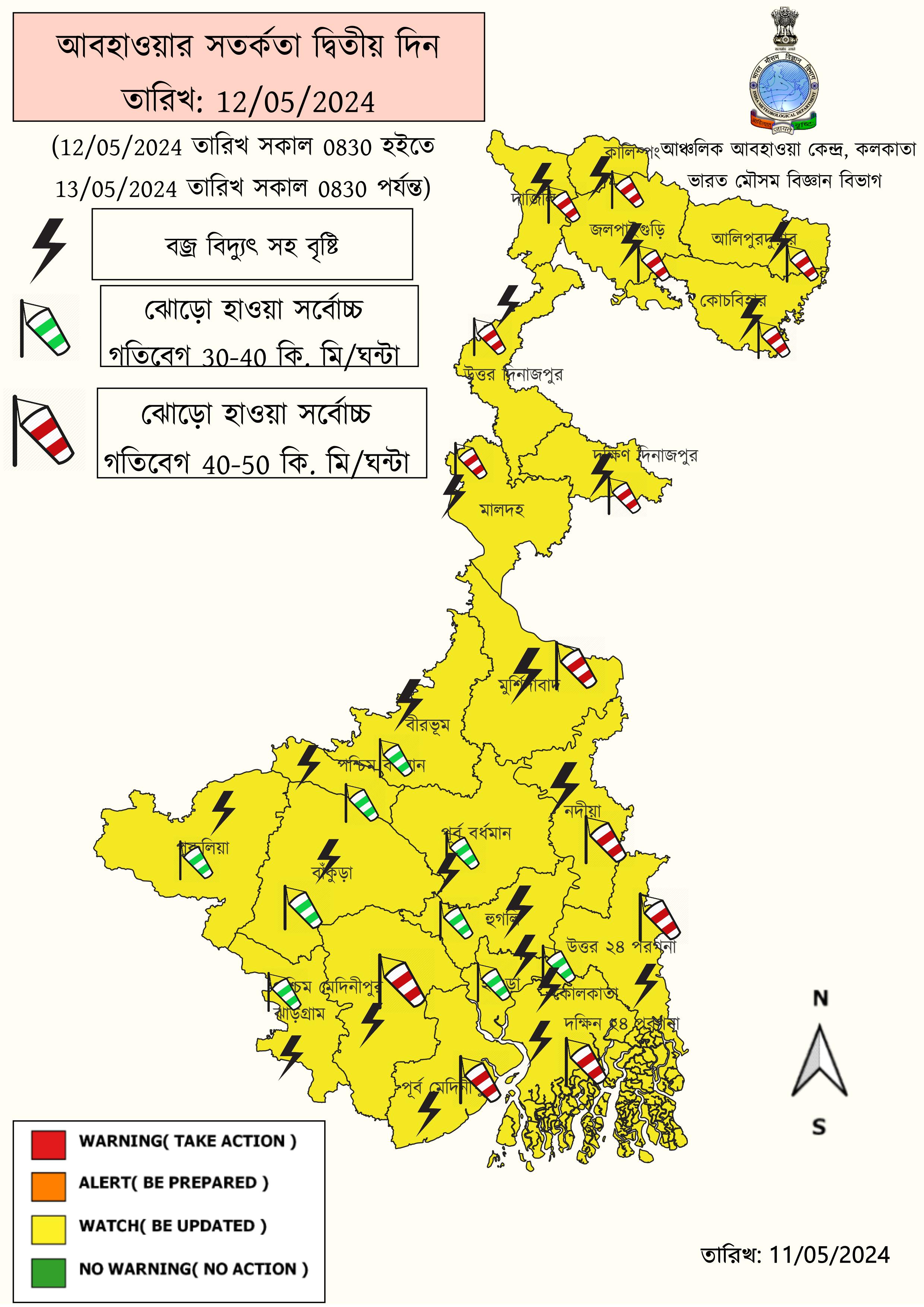 মূলত ঘূর্ণাবর্ত এবং অক্ষরেখা সৃষ্টি হওয়ার কারণে এই ঝড়-বৃষ্টি বলে খবর। আজও কালবৈশাখীর মতো পরিস্থিতি তৈরি হতে পারে বীরভূম, মুর্শিদাবাদ, নদিয়া, পূর্ব মেদিনীপুর, উত্তর ও দক্ষিণ ২৪ পরগনা এই ছয় জেলাতে। হাওয়া অফিসের বুলেটিন অনুযায়ী তেমনই ইঙ্গিত মিলেছে। আজও দক্ষিণবঙ্গের বেশ কিছু জায়গায় ৪০ থেকে ৫০ কিমি প্রতি ঘণ্টা বেগে ঝড় বইবে বলে খবর।