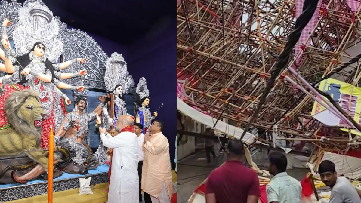 কলকাতা: যোগীরাজ্য উত্তরপ্রদেশের প্রয়াগরাজে ঝড়ের হাওয়ায় উড়ে গেছে ৭০ ফুটের দুর্গা পুজোর মন্ডপ! কাটরা সামিয়া মাই পার্কের প্যান্ডেলের কাপড় খুলে গিয়ে রাস্তার উপর পড়ে আছে কঙ্কালসার বাঁশের কাঠামো। এই ‘অঘটন’ কি “মা দুর্গার ঐশ্বরিক ক্রোধের ফল? নাকি একজন গেরুয়া ধারী ভোগীকে মুখ্যমন্ত্রীর আসনে বসিয়ে রাখার অভিশাপ?” বলে বিজেপির বিরুদ্ধে কটাক্ষ ছুঁড়লেন তৃণমূল কংগ্রেসের (TMC) আইটি (IT) শাখার কর্মী নীলাঞ্জন দাস।
