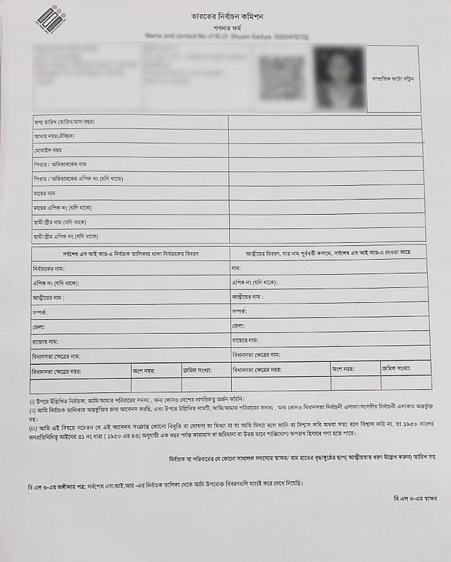 ফর্মটি রাজ্যের মানুষকে মাথায় রেখে বাংলা ভাষায় ছাপানো হয়েছে। পাশাপাশি অন্যান্য ভাষার সংস্করণও বিএলও-দের কাছে থাকবে। ফর্মে বিএলও-র নাম ও মোবাইল নম্বর দেওয়া থাকবে, যাতে ভোটার প্রয়োজনে সরাসরি যোগাযোগ করতে পারেন।